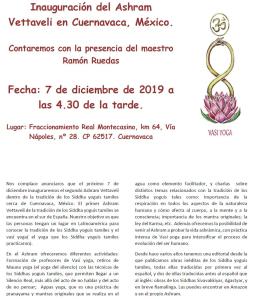 7 diciembre de 2019. Inauguración de Ashram Vettaveli México, con la presencia de su fundador, Ramón Ruedas. Por favor, confirmen asistencia en: