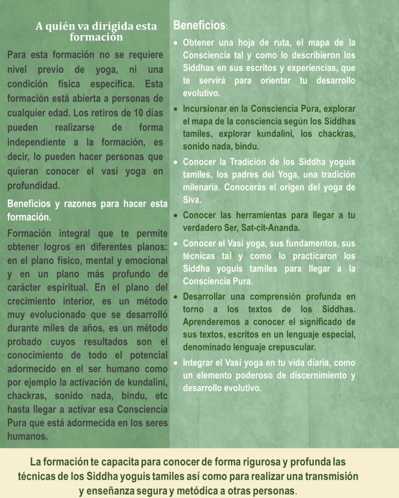 Como dijo Ramón, «sigue el Vasi yoga, no te apartes del camino, no te distraigas. Quien me sigue es porque sigue el camino de la Tradición de los Siddhas tamiles». Uno holla la huella que los Siddhas antes de ti dejaron para que siguieras el camino y no te perdieras.